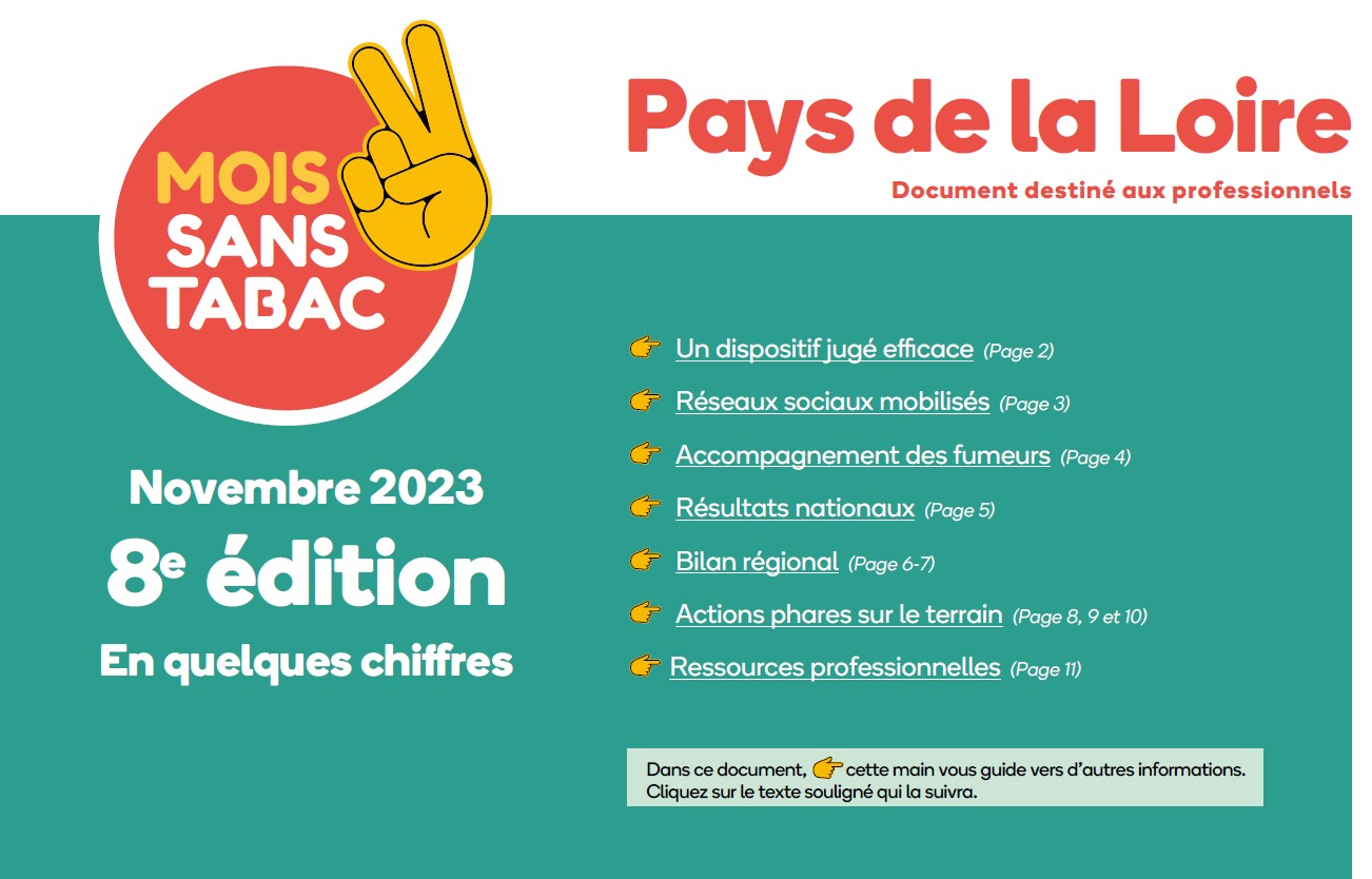 Chaque année, la structure ambassadrice des Pays de la Loire réalise un bilan graphique du déploiement de la campagne sur le territoire. Ces bilans sont mis à votre disposition afin que vous puissiez prendre connaissances des informations du type : nombre d'inscriptions en Pays de la Loire, mobilisation des acteurs, communication en région, évaluation du dispositif, etc.